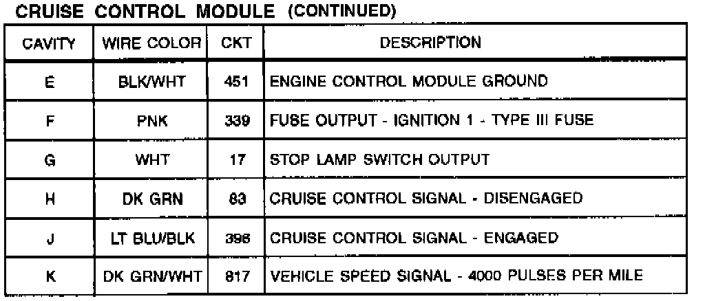 Cruise Control Module: Diagrams