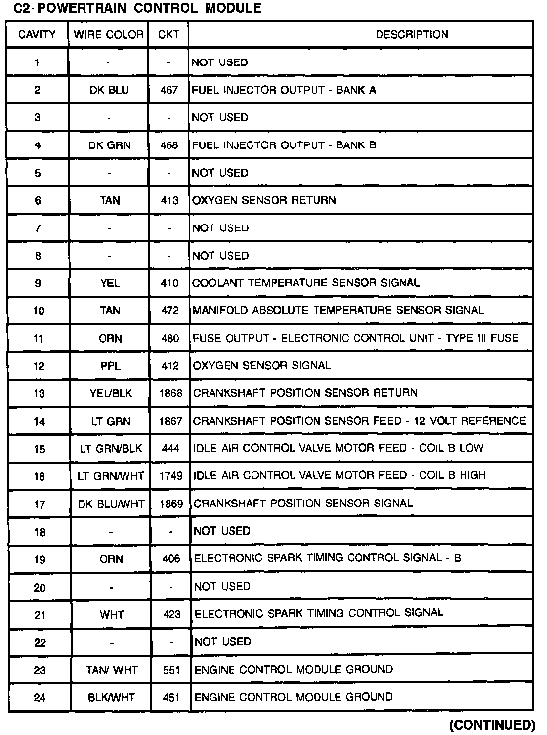 Powertrain Control Module: C2 (Part 2 Of 2):
