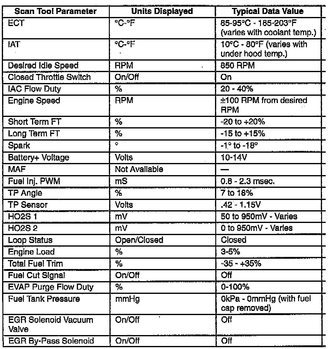 Scan Tool Data List