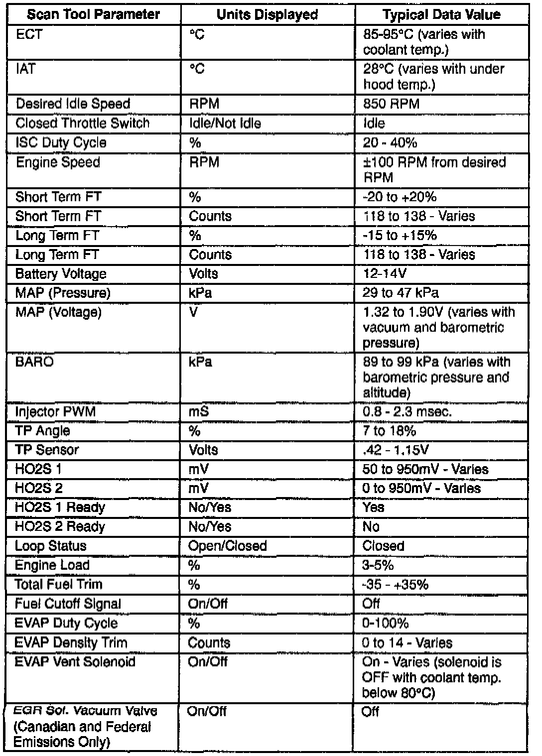 Scan Tool Data List