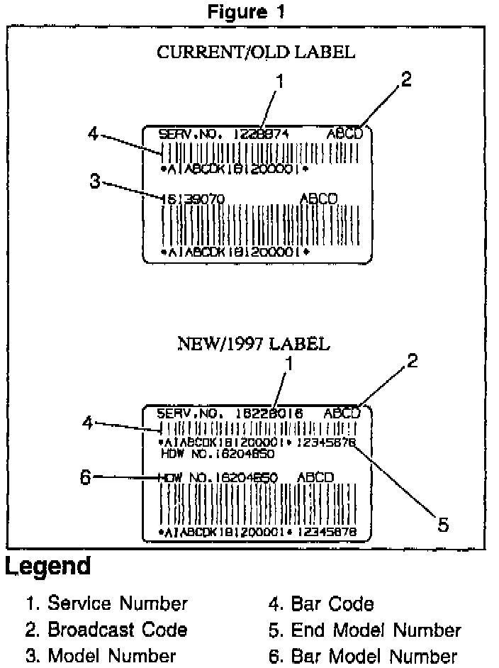 Effective March 7, 1996, all 1996-1/2 and 1997 model year passenger cars received a change to the identification label used on PCM's. Other than its appearance, these changes do not affect the service replacement procedure of PCM's. The illustration details the changes.