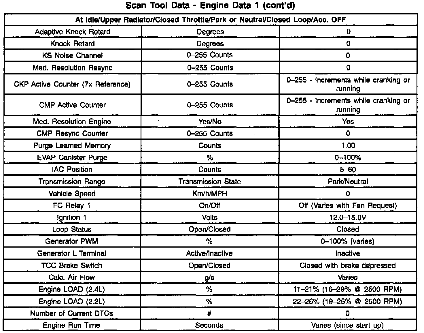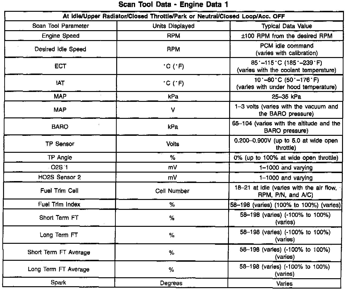 Scan Tool Data List