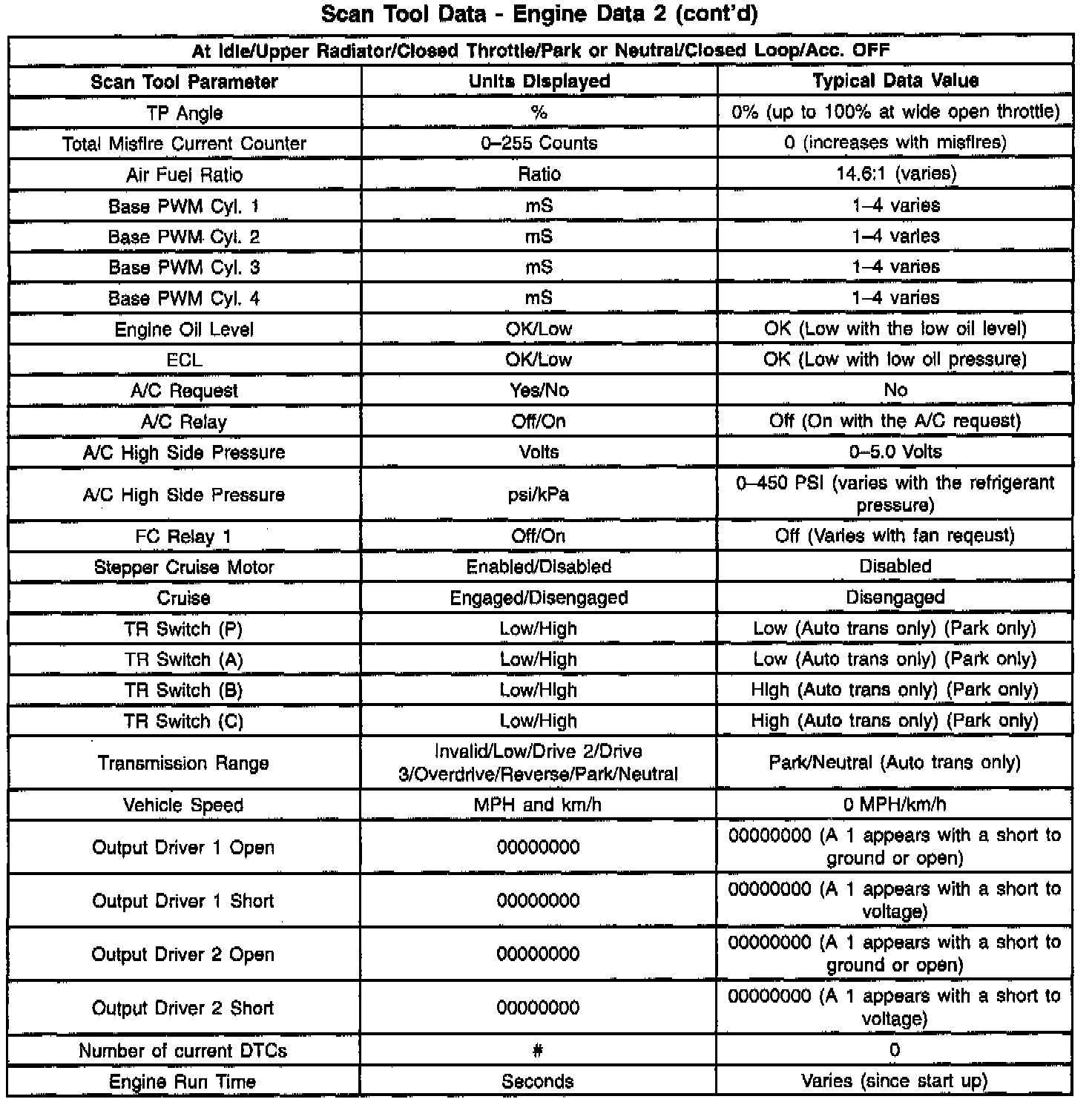 Scan Tool Data List