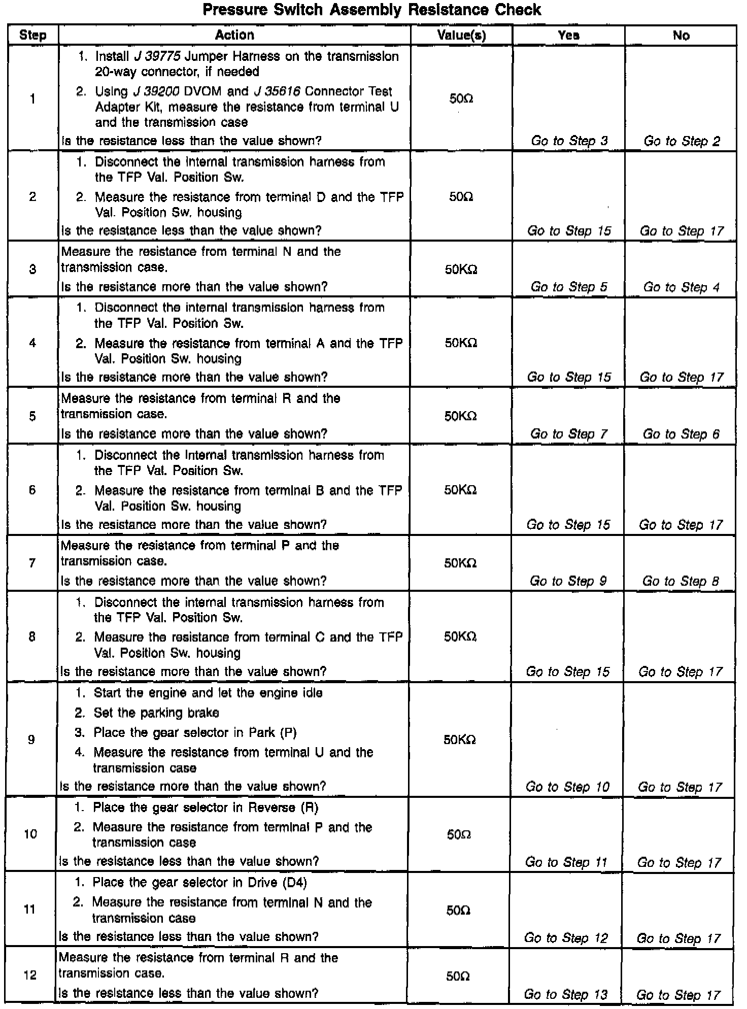Transmission Position Sensor/Switch: Testing and Inspection