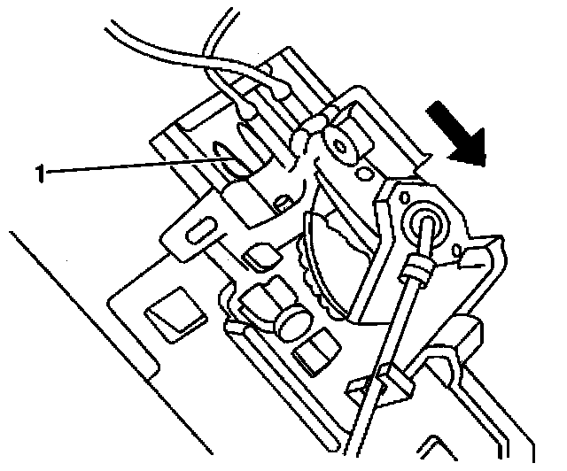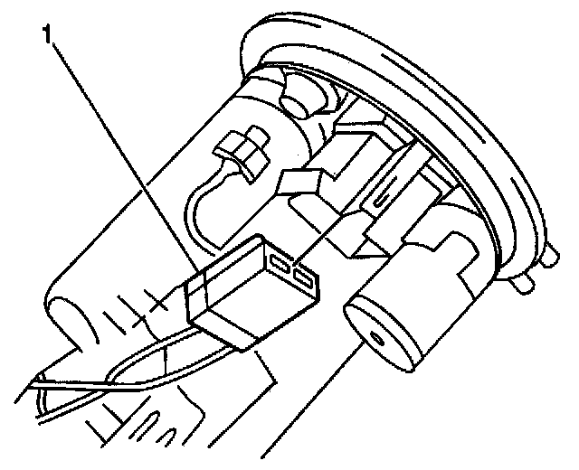3. Depress the retaining tab (1) and slide the fuel level sensor assembly down in order to remove the sensor from the fuel sender assembly.