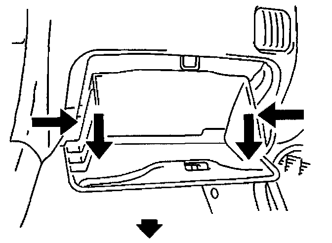 3. Apply pressure to the sides of the glove box in order to release the two side catches and pull the glove box down.