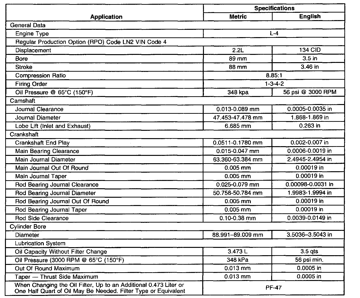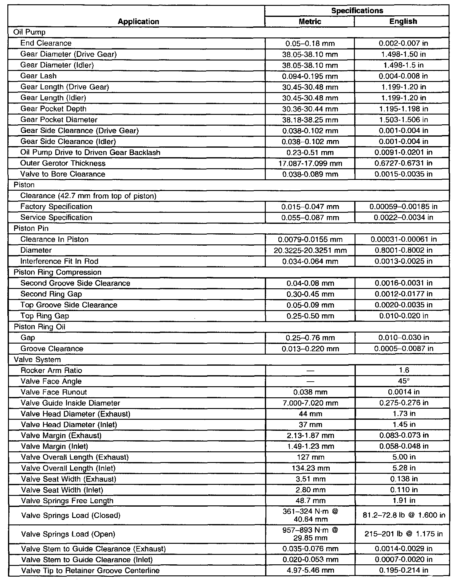 Engine Mechanical Specifications