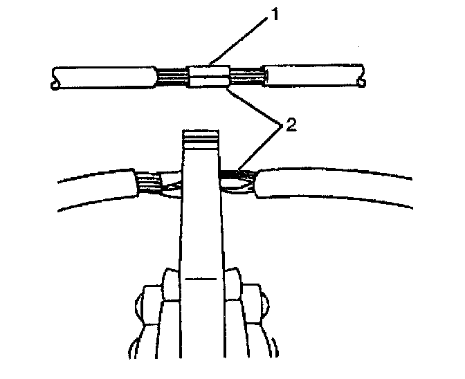 ^ Ensure that each splice is at least 40 mm (1.5 in) away from other splices, harness branches and connectors. This helps prevent moisture from bridging adjacent splices and causing damage.