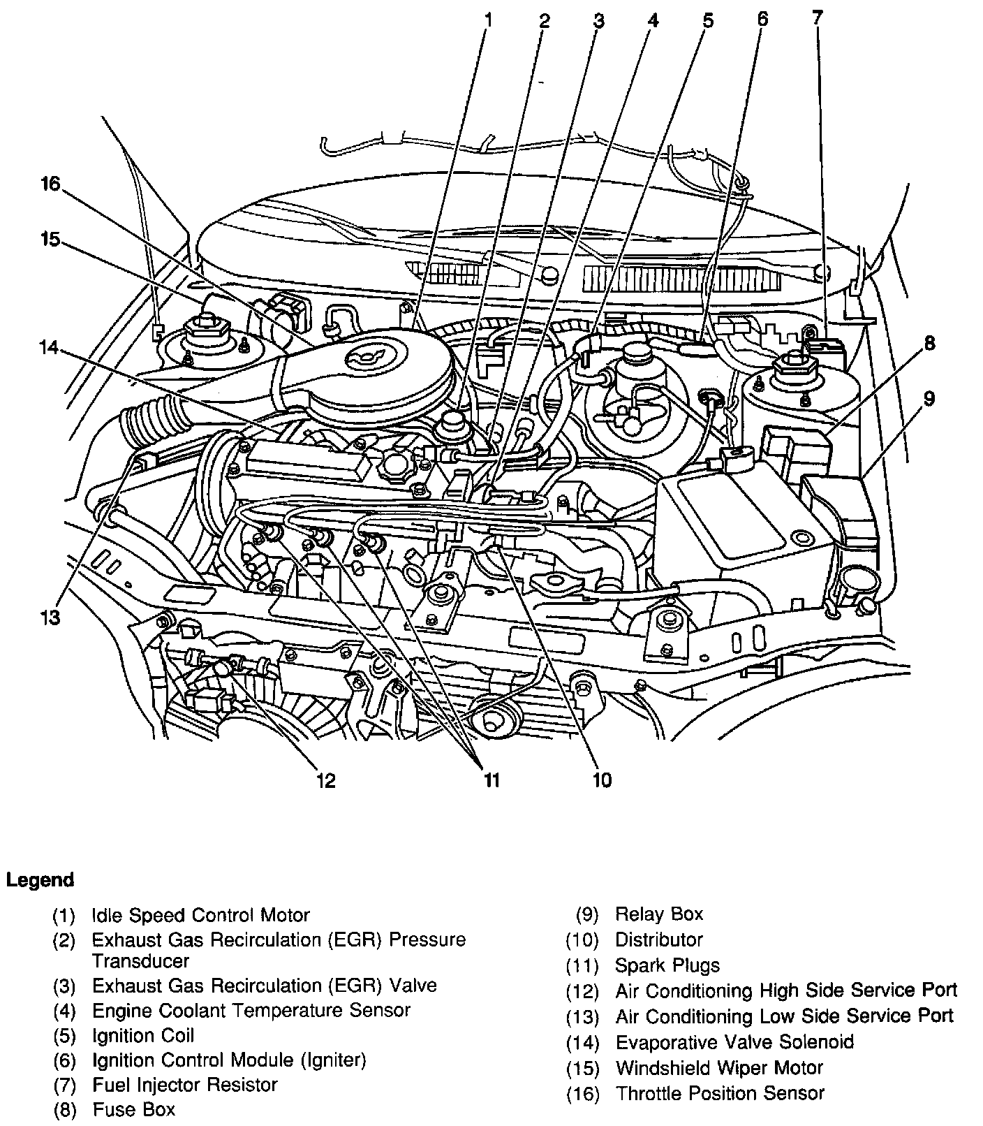 The left side of the engine compartment, mounted on the left inner side of the fender, behind the relay box.