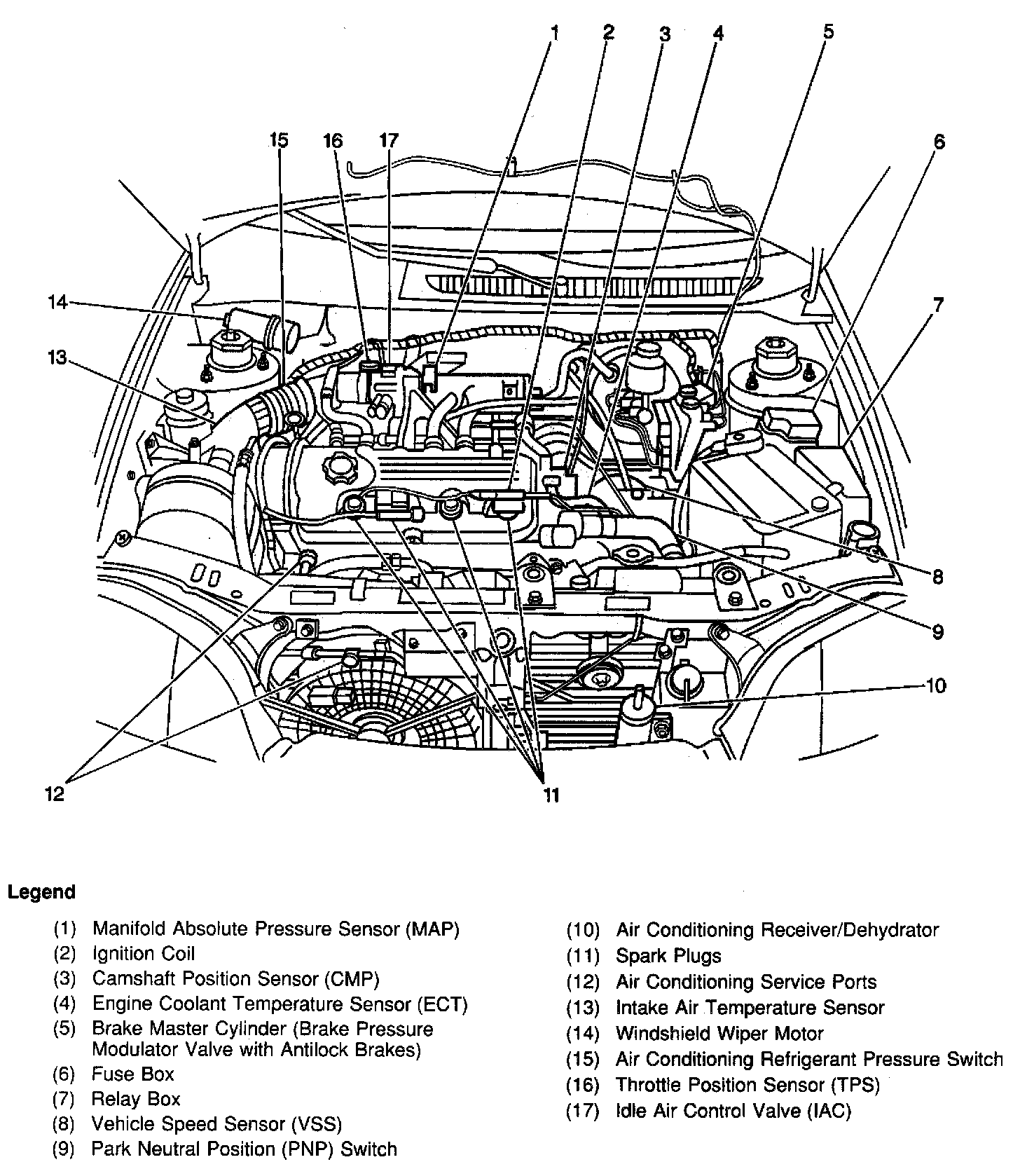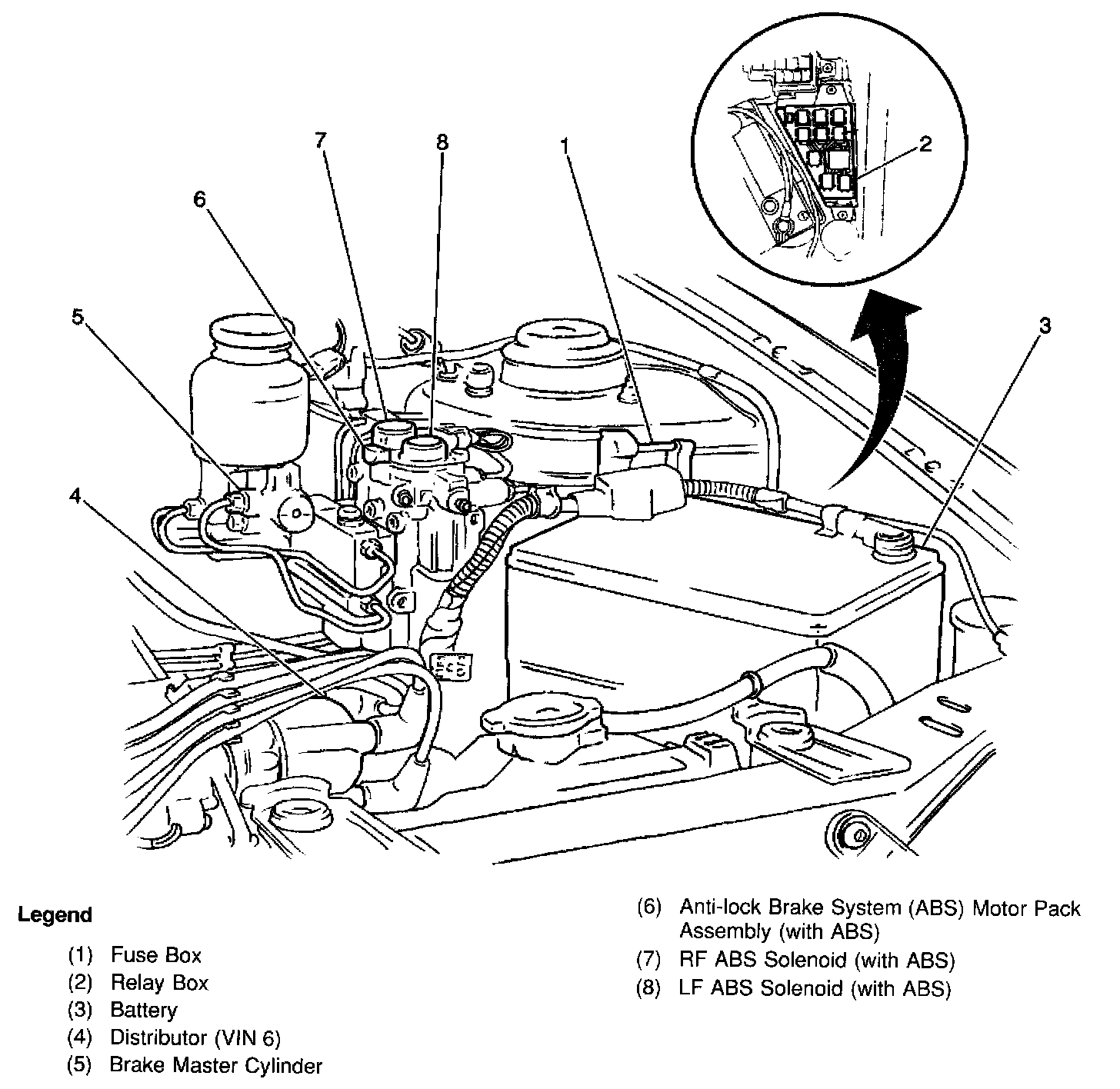 The left side of the engine compartment, mounted on the left inner side of the fender, behind the relay box.
