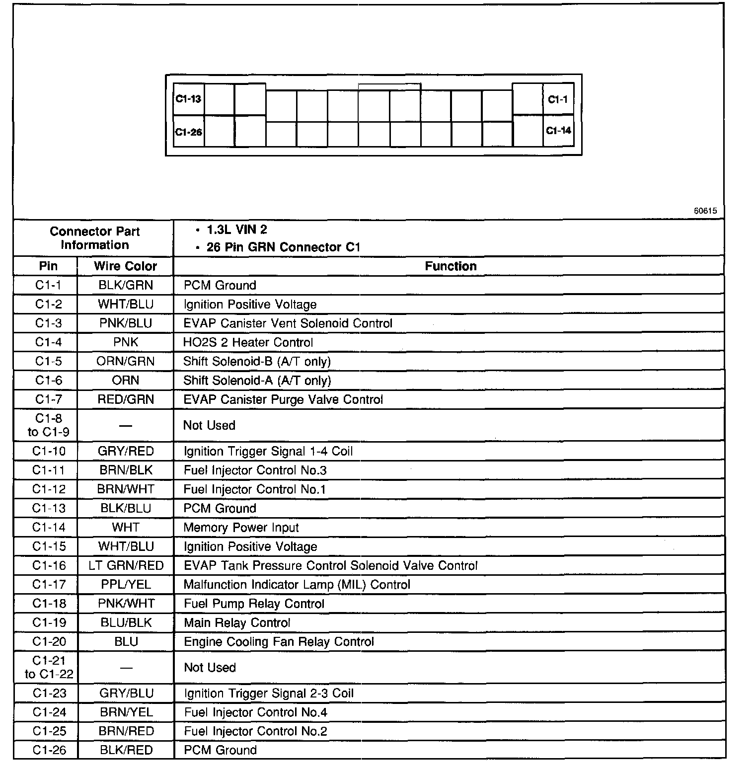Back View Of The PCM Connector C1: