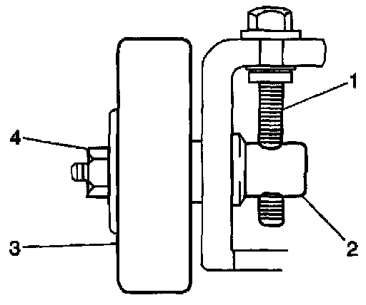 5.1. Turn the idler pulley adjusting bolt (1) in order to obtain 7-9 mm (0.28-0.35 in) of belt deflection at 10 kg (22 lb) of force.
