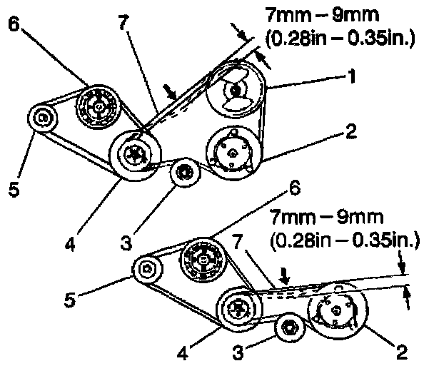4. Ensure that the belt is correctly aligned on the compressor pulley, on the crankshaft pulley, and on the power steering pulley, if equipped.