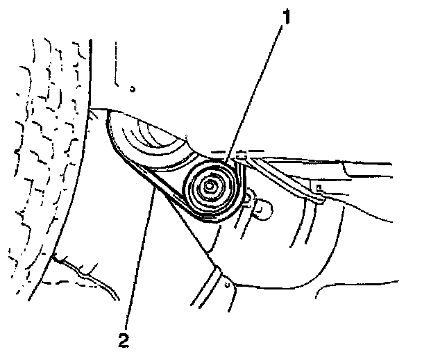 7. Remove the compressor drive belt (2) from the clutch pulley.
