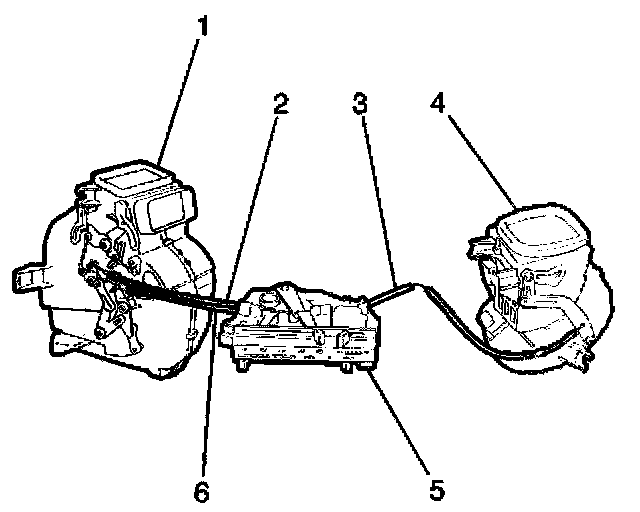12. Adjust the temperature mode cable and the the fresh/recirc control cable. Refer to Temperature Control Cable Adjustment, Vent Control Cable Adjustment and to Mode Control Cable Adjustment