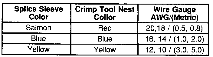5. Select the proper splice sleeve (2) and the required crimp nest tool, refer to the Crimp and Seal Splice Table.