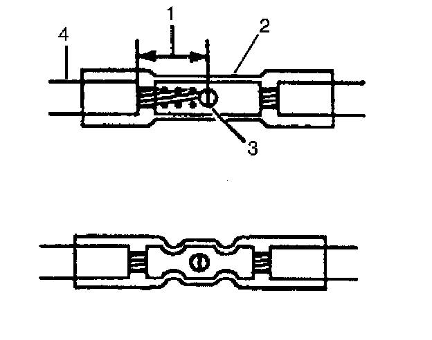 9. Insert the wires into the splice sleeve until the wire hits the barrel stop. The splice sleeve has a stop in the middle of the barrel in order to prevent the wire from passing through the splice (3).