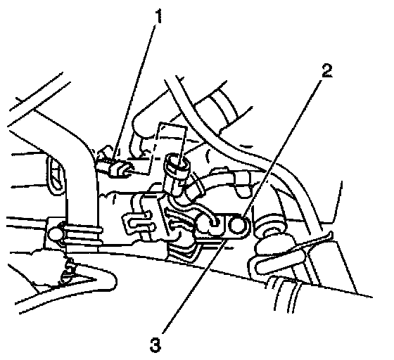 2. Remove the bolt (2) and the VSS (3) from the top of the transaxle.