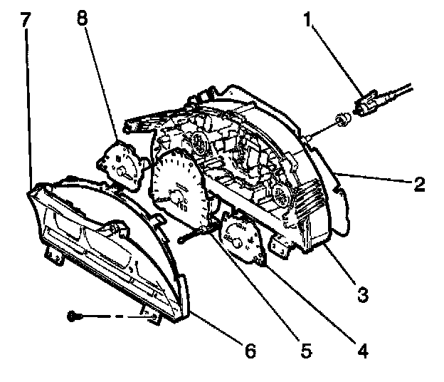 2. Push on the tabs in order to remove the cluster lens (7) and the bezel assembly (6) from the cluster housing.