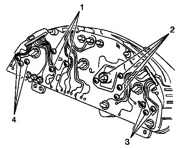 3. Remove 4 screws (2) that secure the speedometer to the cluster housing.