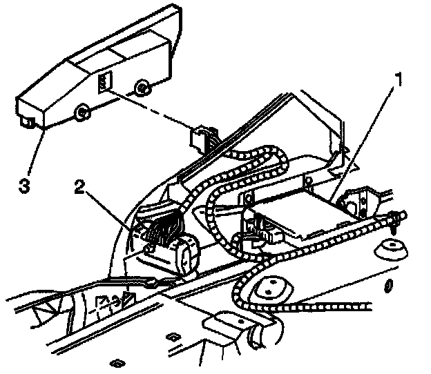 3. Disconnect the electrical connector (2) of the remote control door lock receiver (1).