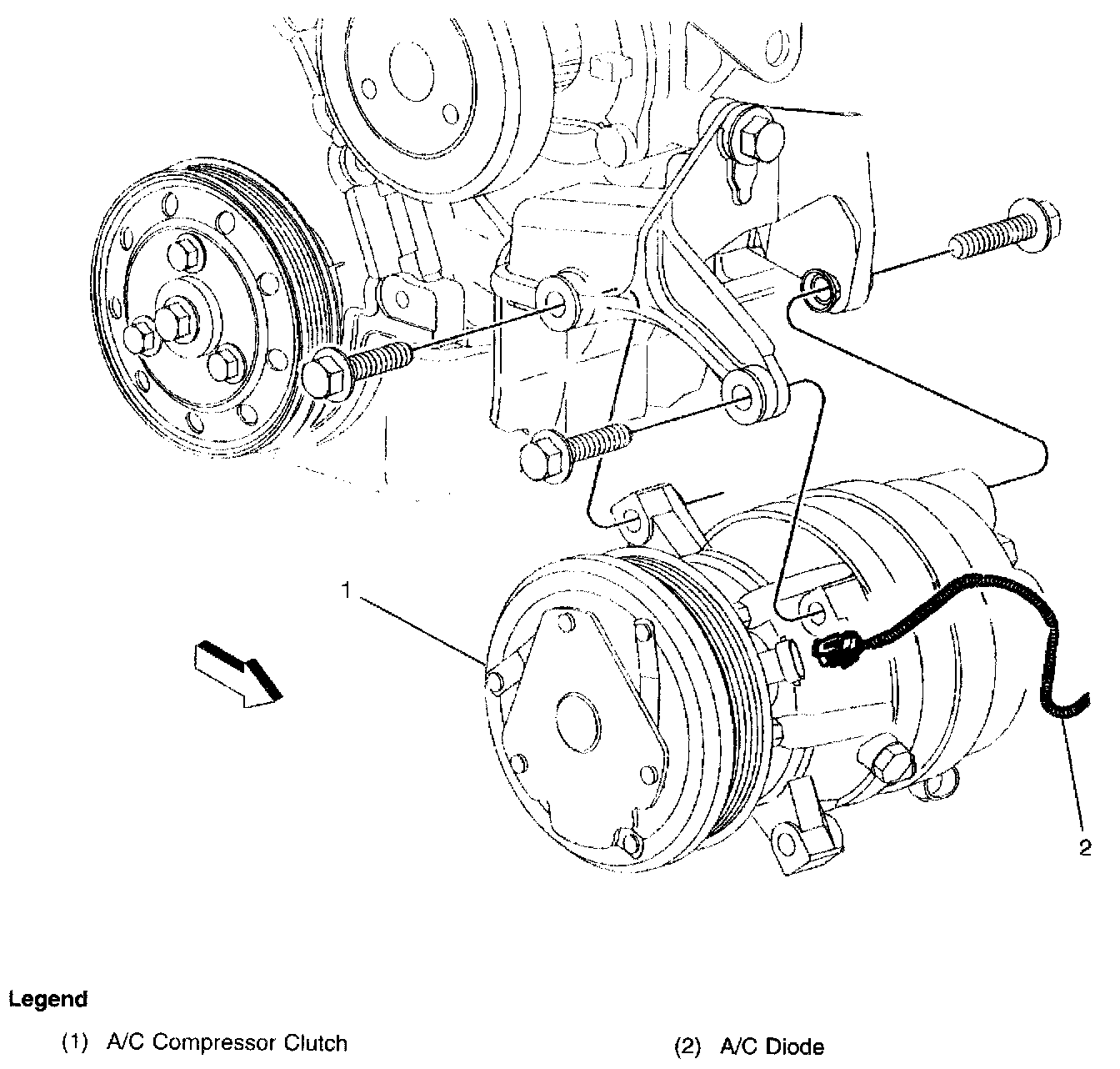 In the engine harness approximately 21 cm (8 in) from the A/C compressor clutch connector