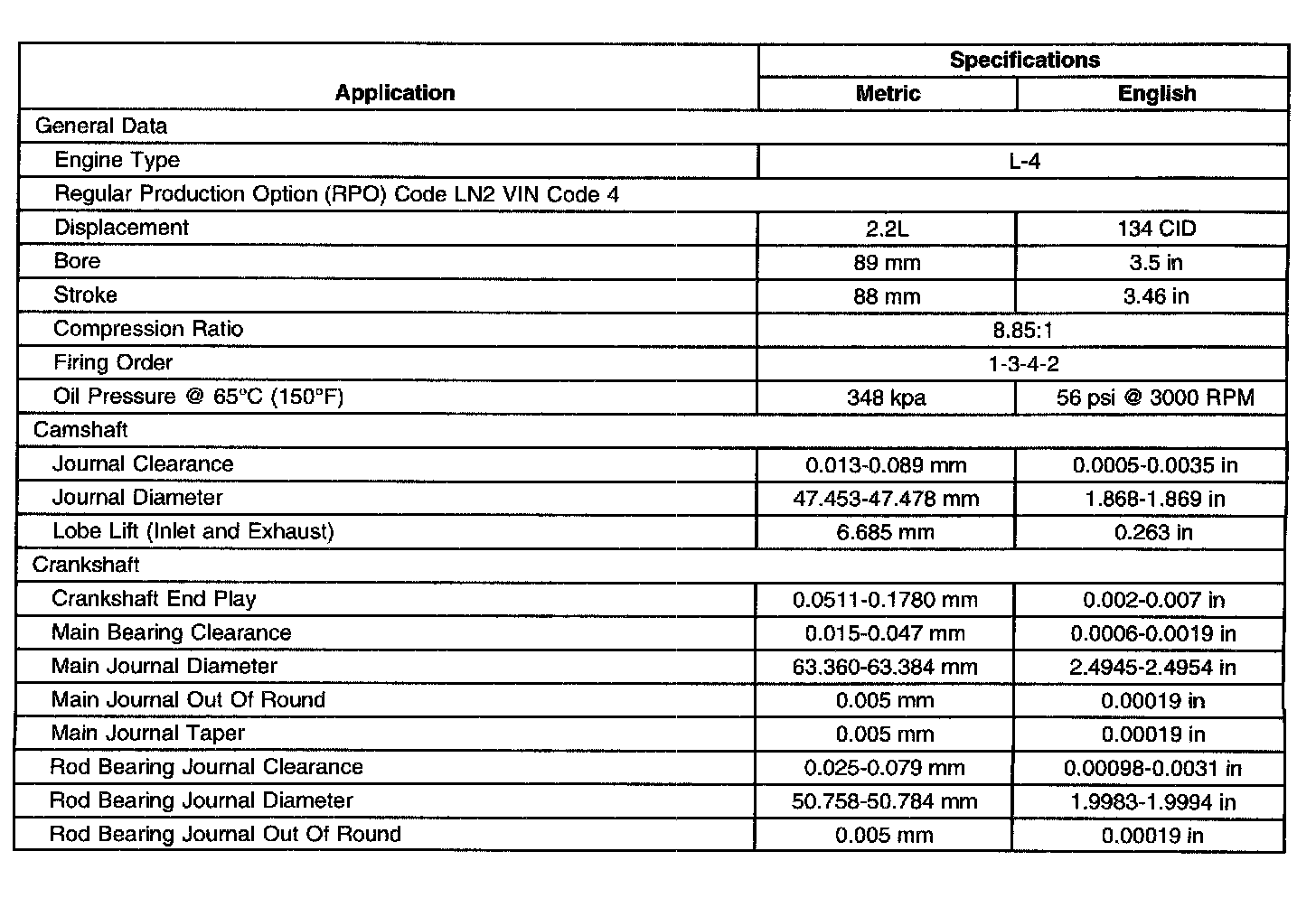 Sunfire L4-2.2L VIN 4