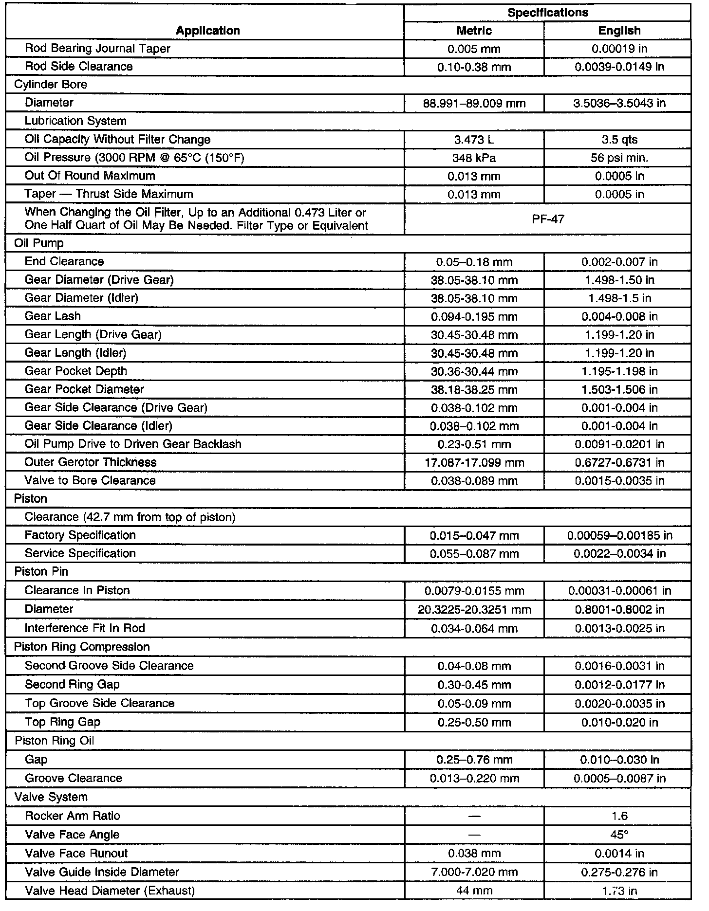 Engine Mechanical Specifications