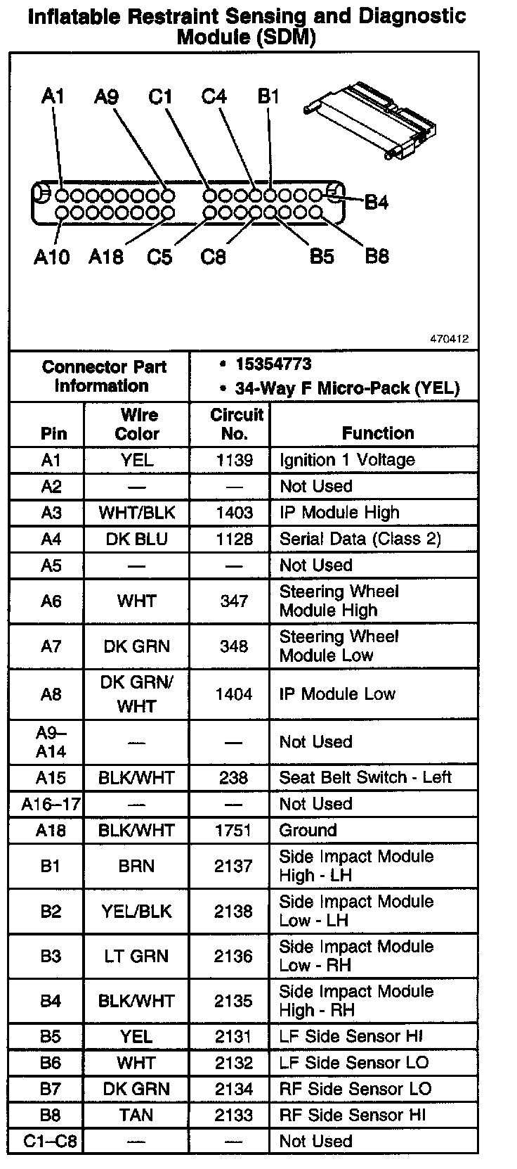 Inflatable Restraint Sensing And Diagnostic Module (SDM):