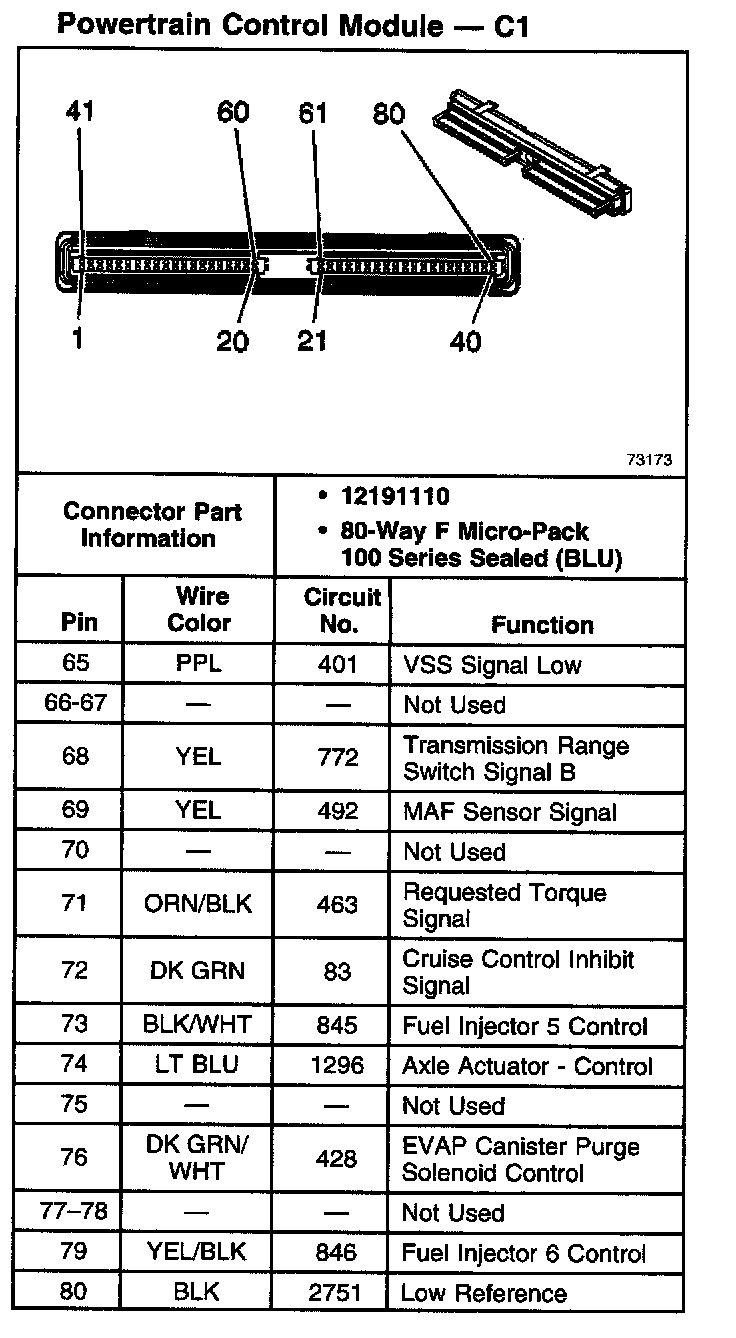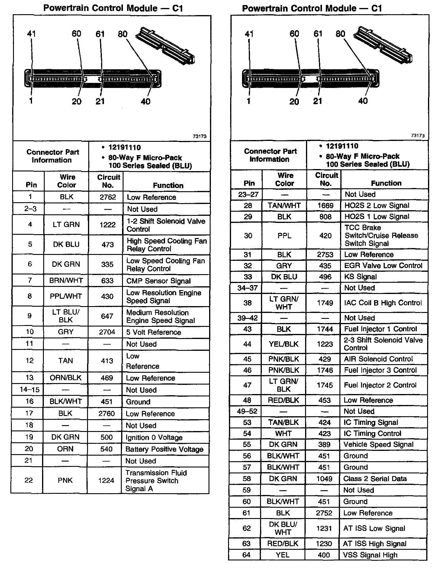 Powertrain Control Module - C1 (Part 2 Of 2):