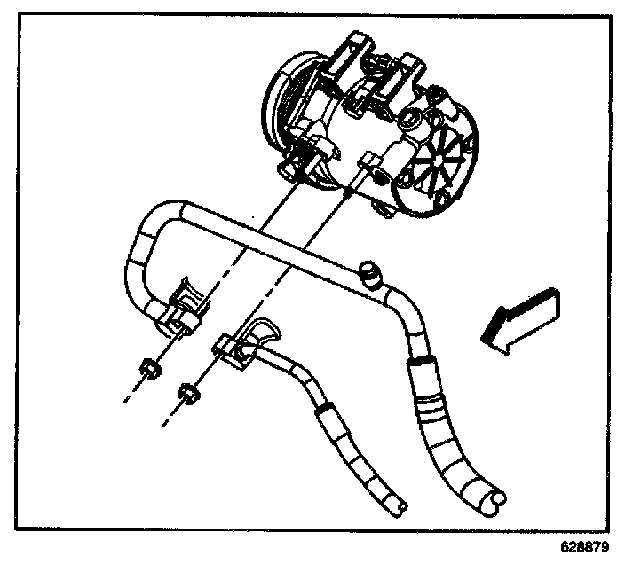 14. Disconnect the discharge hose from the compressor.