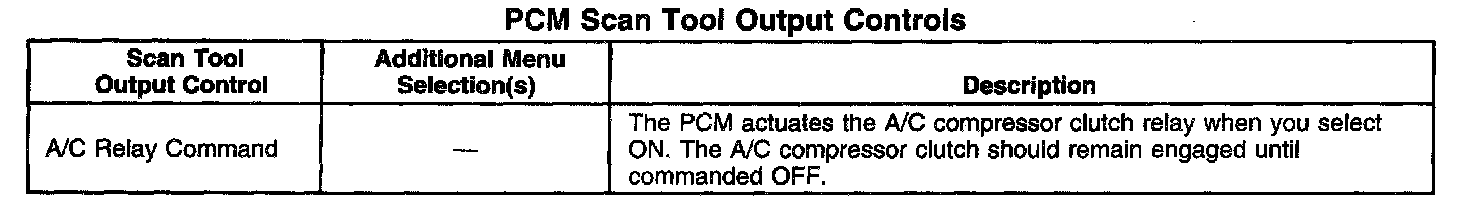 Scan Tool Output Controls - Powertrain Control Module (PCM)