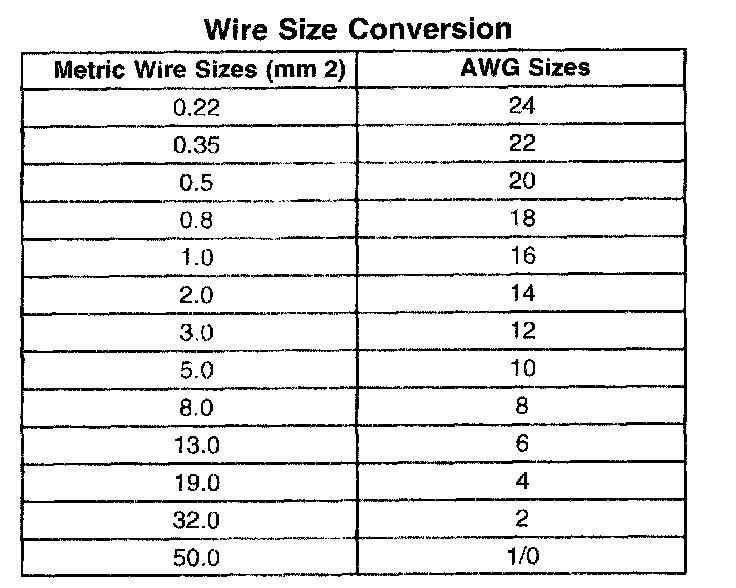 Wire Size Conversion: