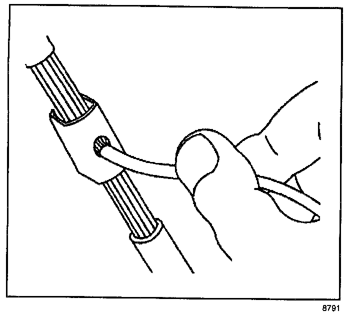 ^ Strip approximately 7.5 mm (5/16 in) of insulation from each wire to be spliced.