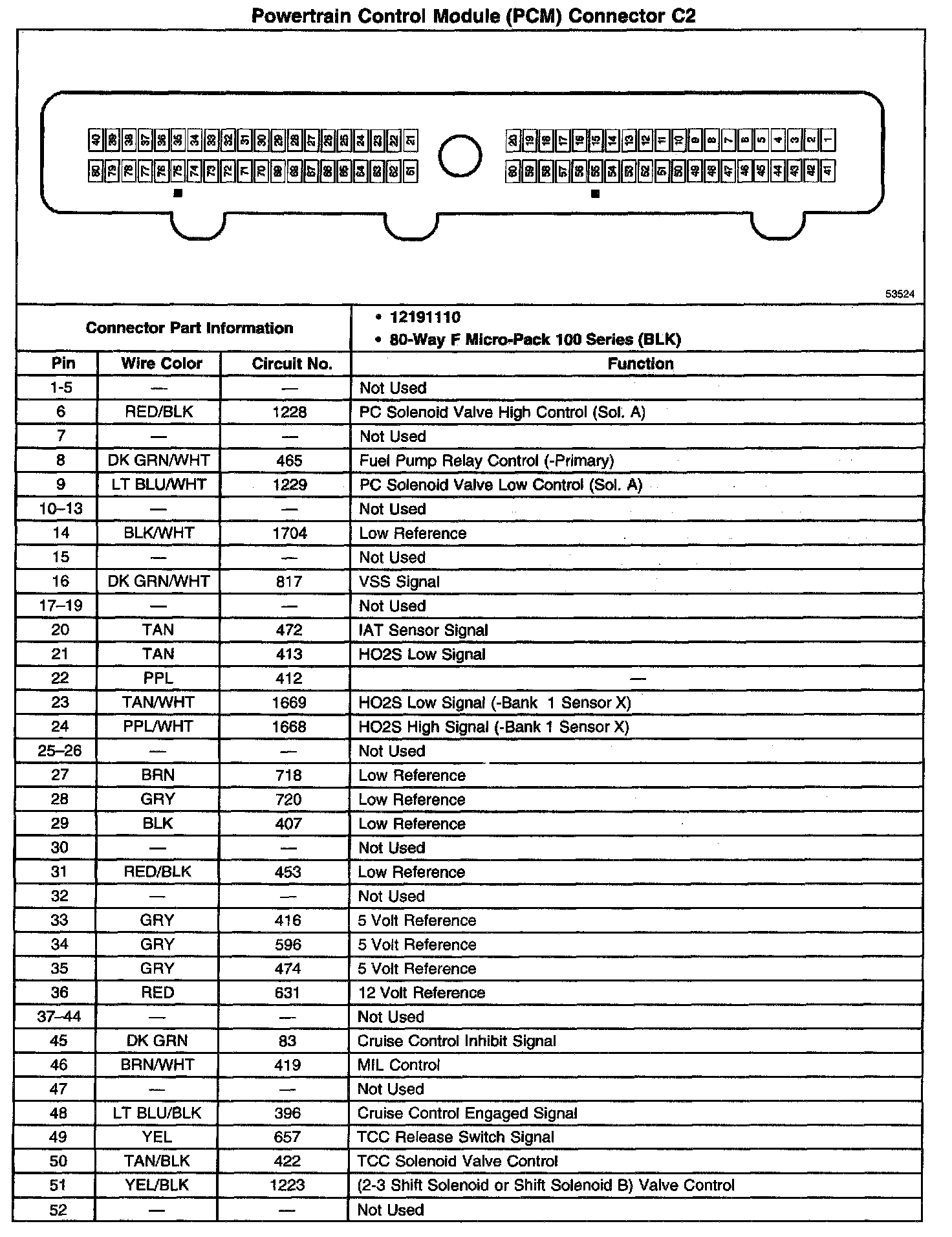 Powertrain Control Module (PCM) Connector C2 (Part 1 Of 2):