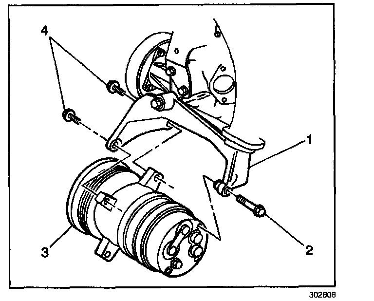 5.1. Tighten the front compressor mounting bolts (4) to 45 N.m (33 lb ft).