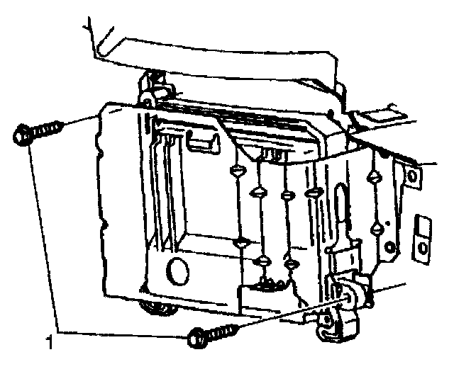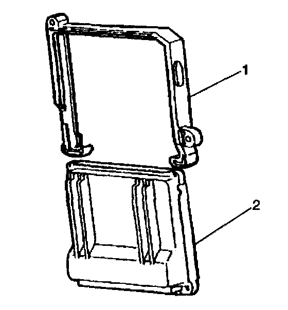 8. Slide the PCM assembly (1) and protective cover (if equipped) from the PCM bracket (2).