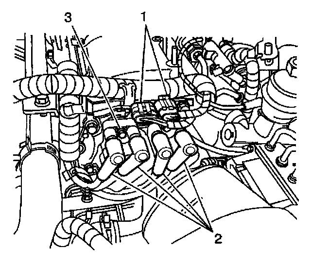 Tighten the ignition coils bolts (3) to 4 N.m (35 lb in).