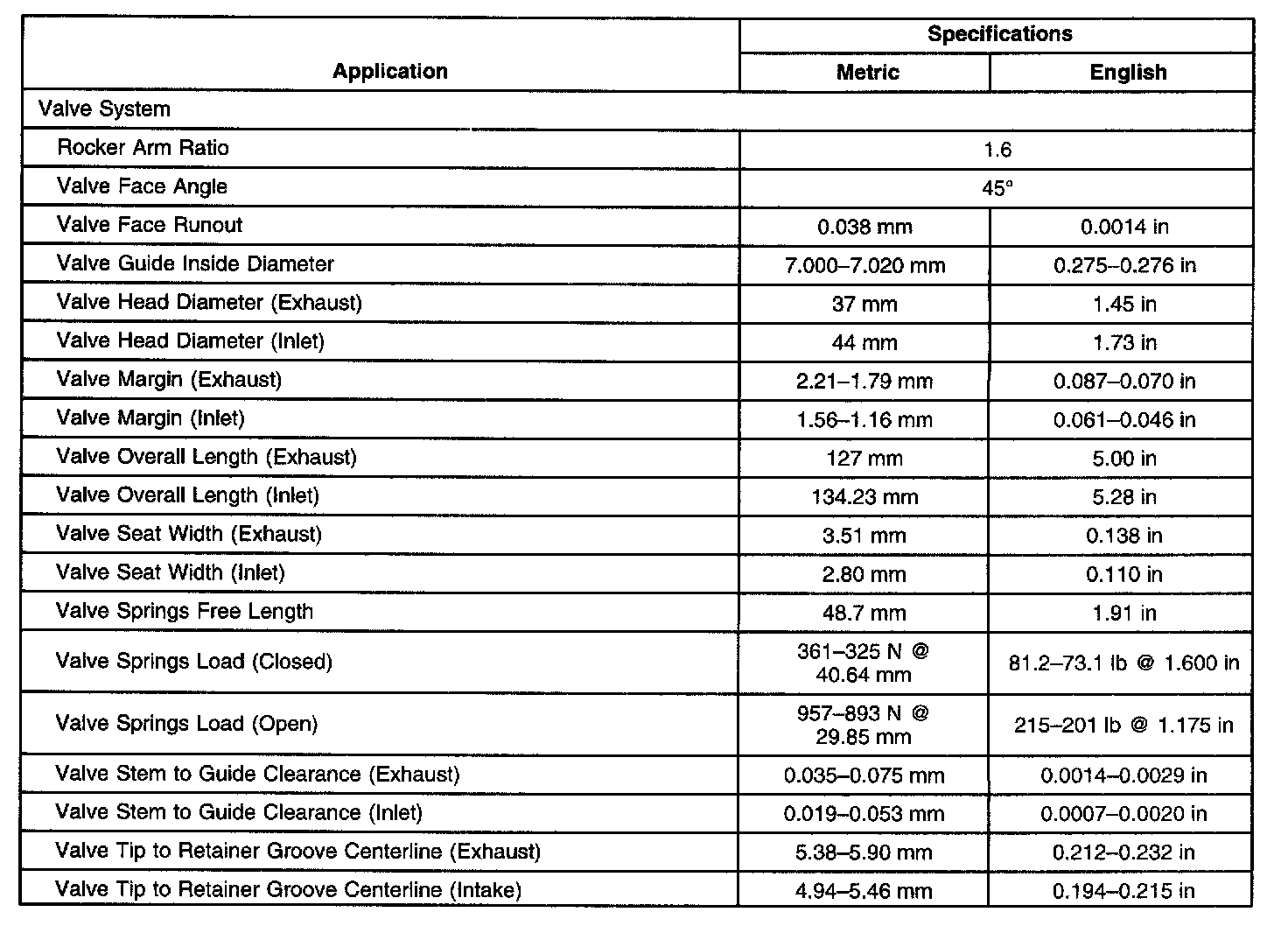 Engine Mechanical Specifications