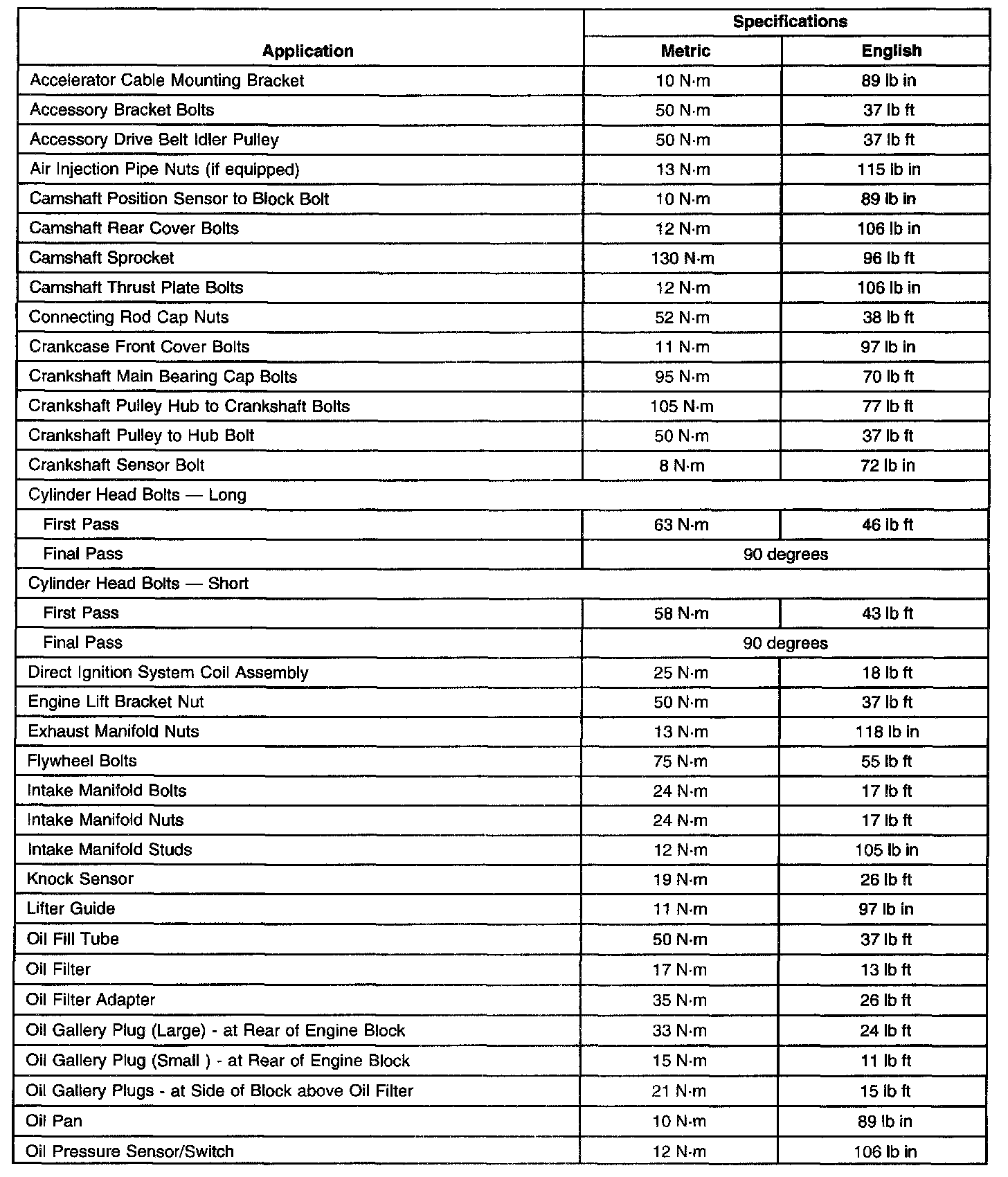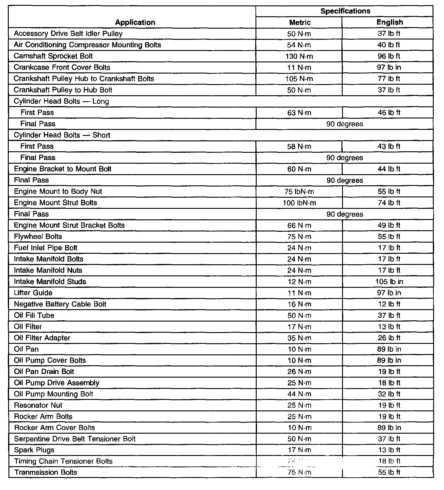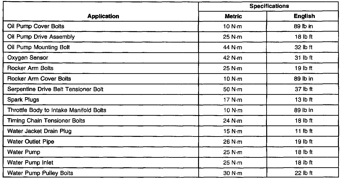 Fastener Tightening Specifications