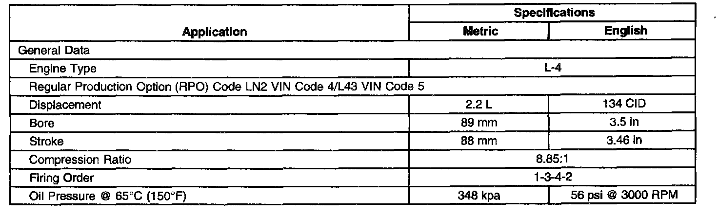 General Engine Data/Specifications