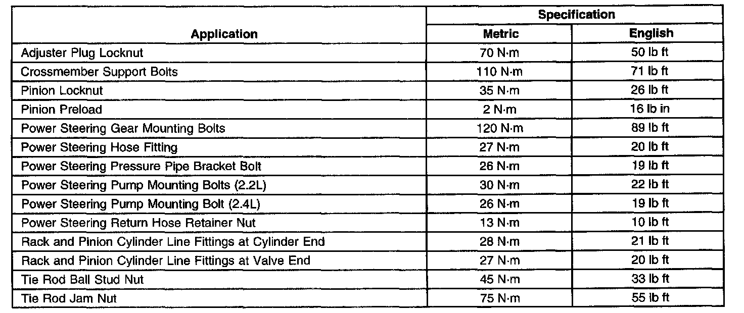 Fastener Tightening Specifications