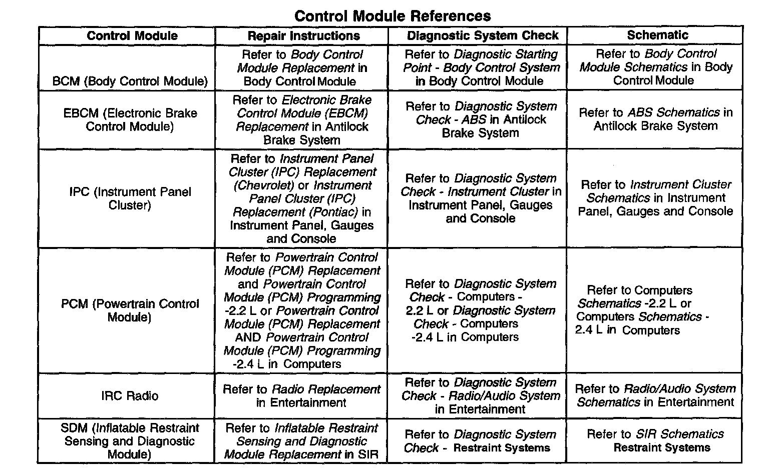 Control Module References
