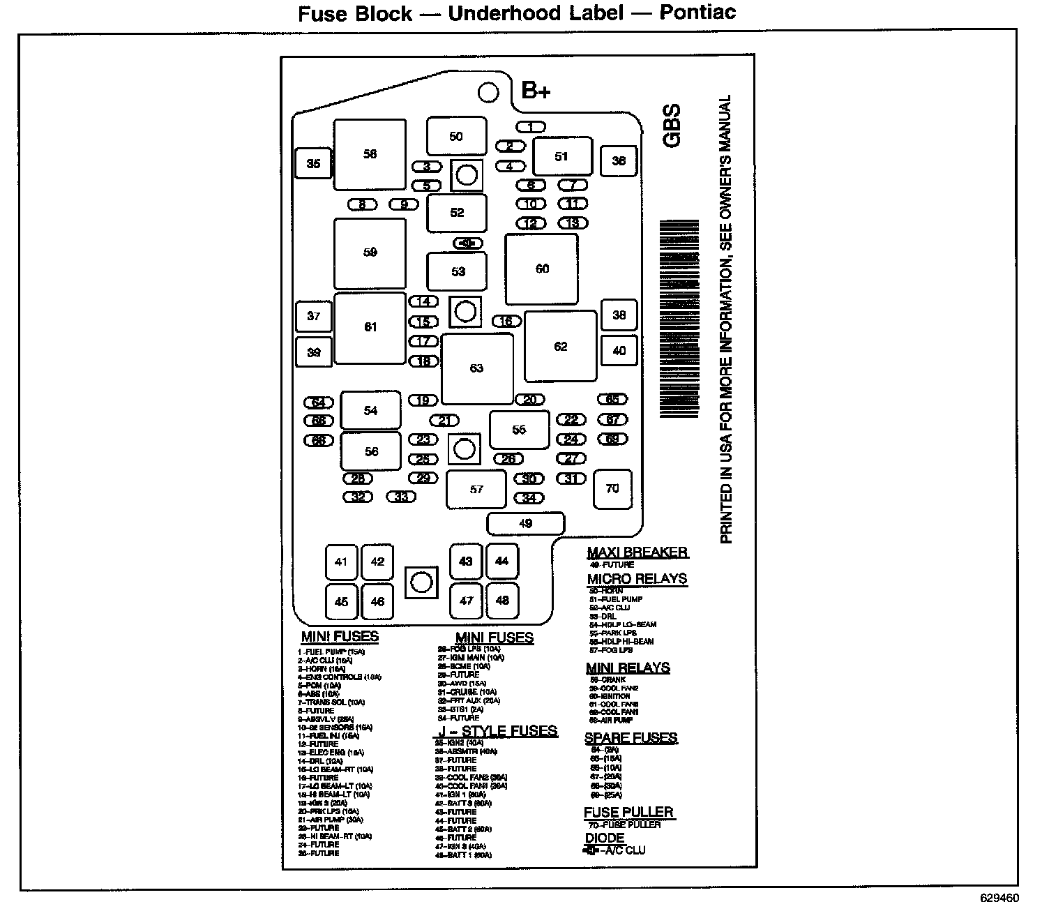 Fuse Block - Underhood Label - Pontiac: