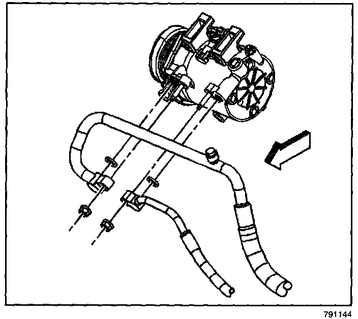 11. Remove the discharge hose to compressor nut.