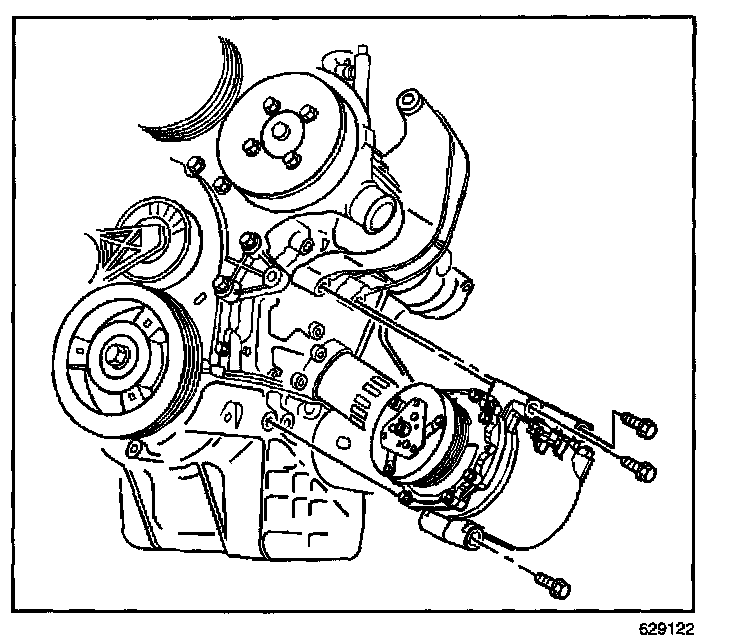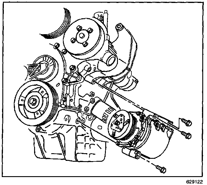 16. Remove compressor mounting bolts.