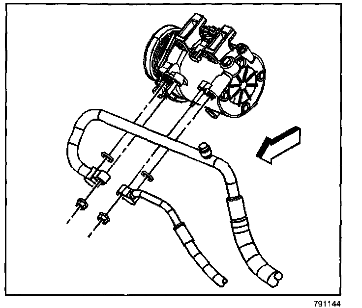 Reposition the engine harness away from the compressor.