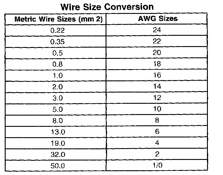 Wire Size Conversion: