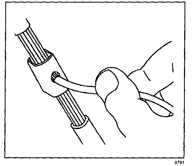 ^ Strip approximately 7.5 mm (5/16 in) of insulation from each wire to be spliced.