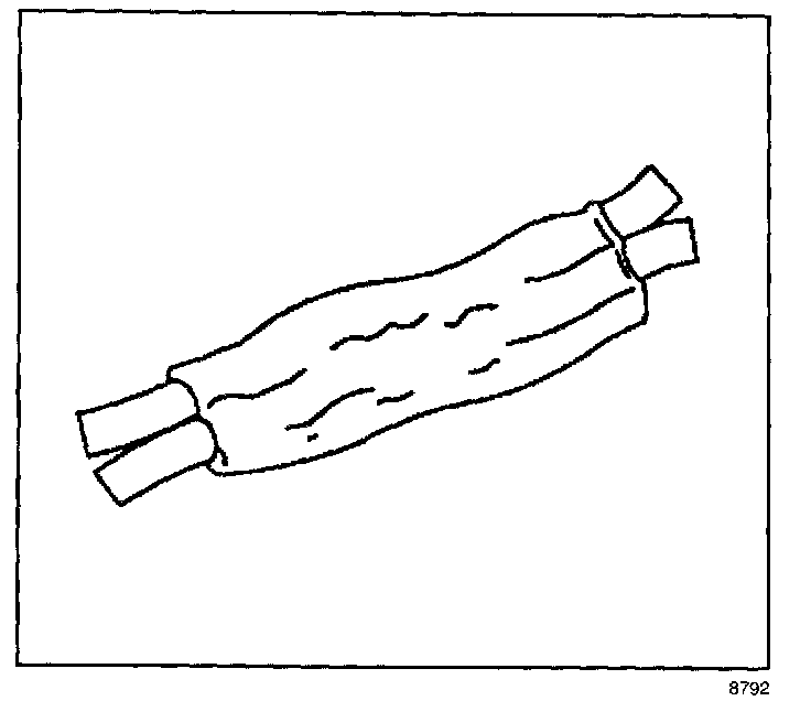 ^ Ensure that each splice is at least 40 mm (1.5 in) away from other splices, harness branches and connectors. This helps prevent moisture from bridging adjacent splices and causing damage.